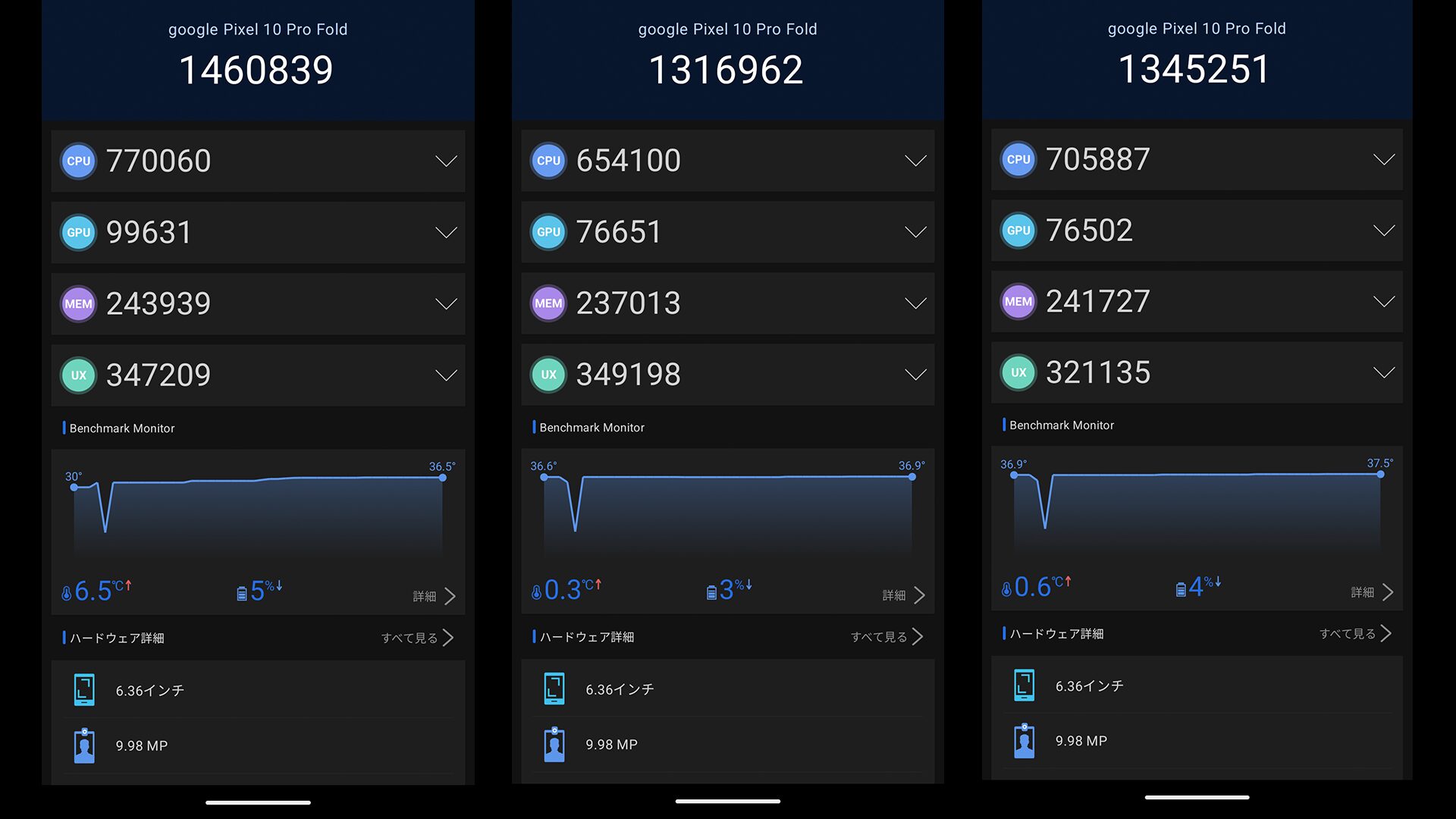 まず先日購入したGoogle Pixel 10 Pro FoldのベンチマークスコアにおいてGPUが「8万点」前後とかなり低いことを確認することが出来ます。その上で今回以下のようなコメントを頂きました。