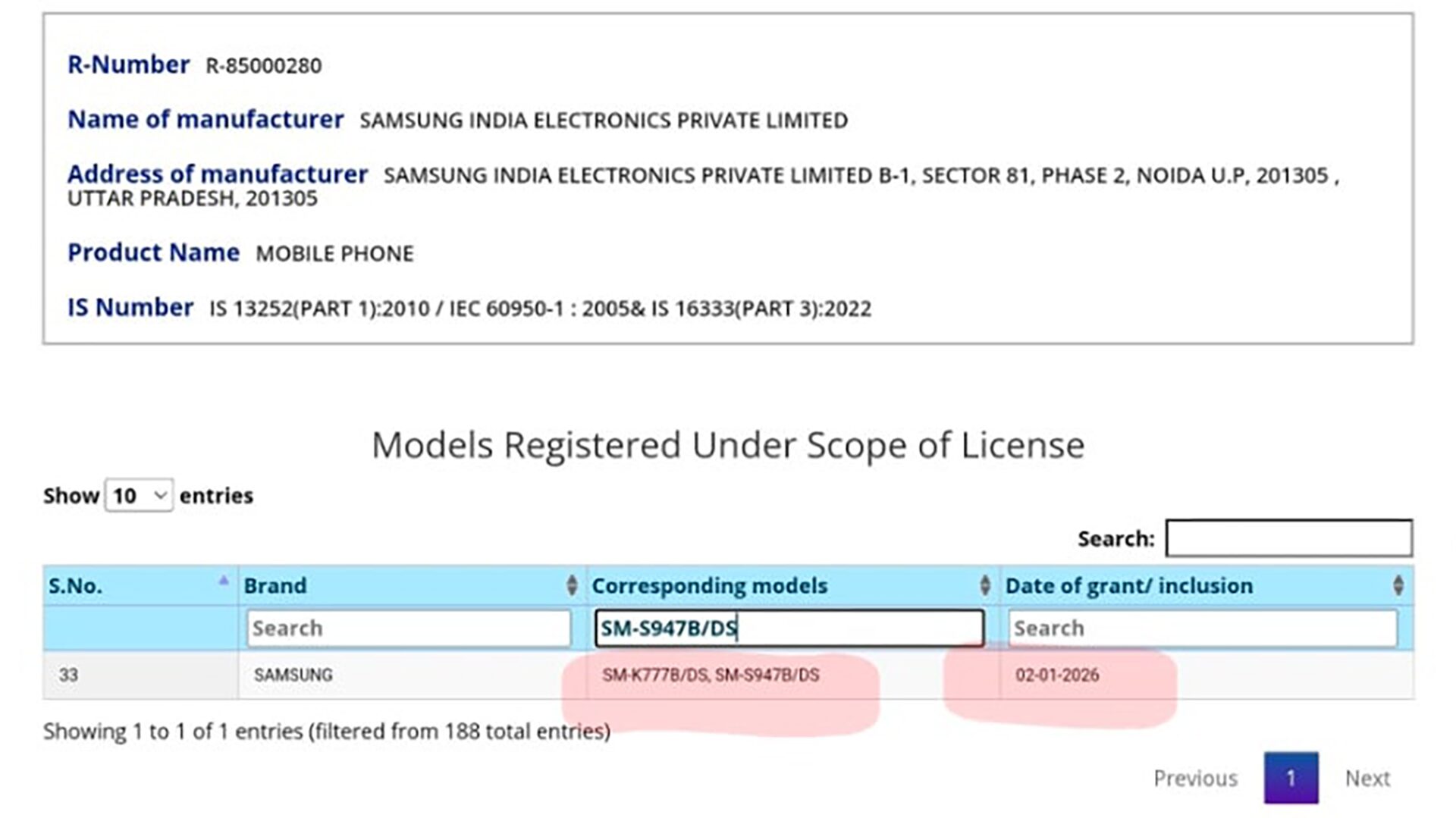 今回の情報によるとインドの「BIS」においてGalaxy S26 Edgeが認証を通過していることが判明したとしています。さらに上記の画像からもモデル番号は「SM-947B」となっており「2026年1月2日付」となっていることを確認することが出来ます。