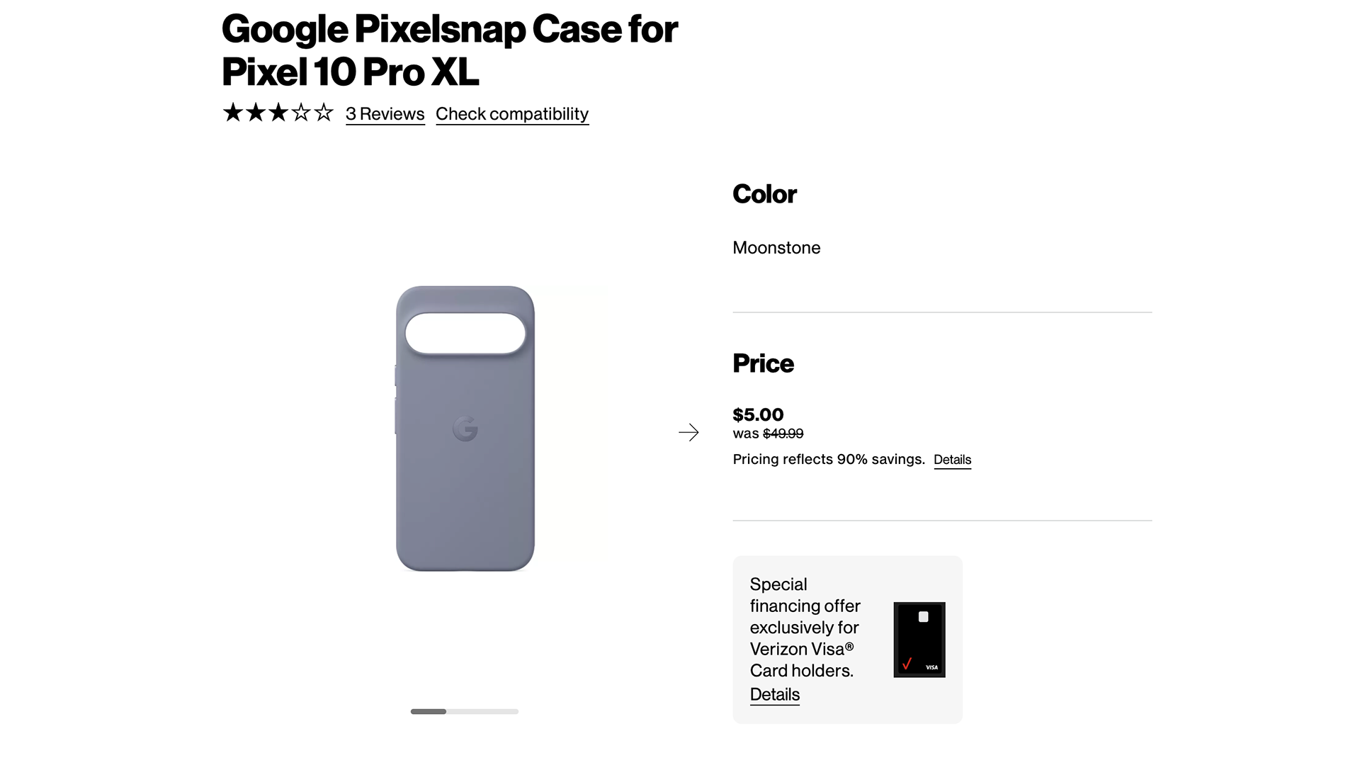 VerizonがPixel 10 Pro XL用のMoonstoneケースを5ドルで販売中。ちょっと共有しておきます。いつまで続くかは不明ですが、どうやら在庫一掃の大幅値下げっぽいです。このケースだけでなく、Pixel向けケースが他にも安くなっているようです。