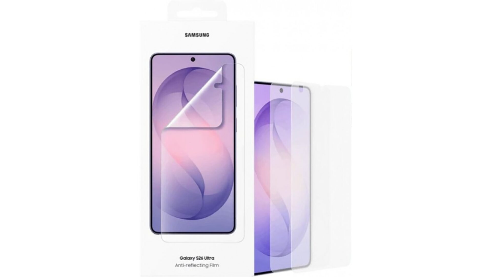 また今回の情報によるとGalaxy S26シリーズのアンチグレア保護フィルムも確認することができます。現行モデルの大きな特徴として反射率が他社と比較して大幅にカットされていることですが、ガラスフィルムなどを貼ってしまうと正直台無しです。