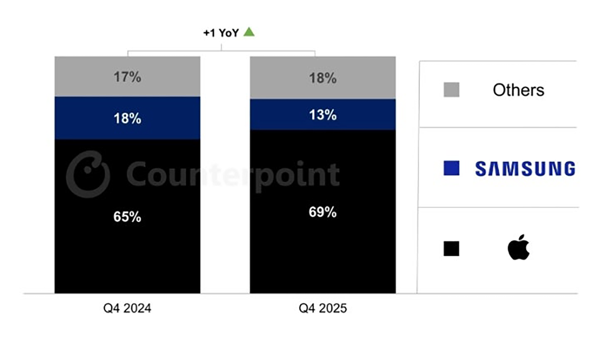 今回Counter Pointが公開した調査レポートからもAppleは2025年第4四半期のアメリカ市場で最高記録を達成したことが判明したとしています。上記の画像からもAppleは前年対比でシェアを大きく拡大したことを確認することができます。