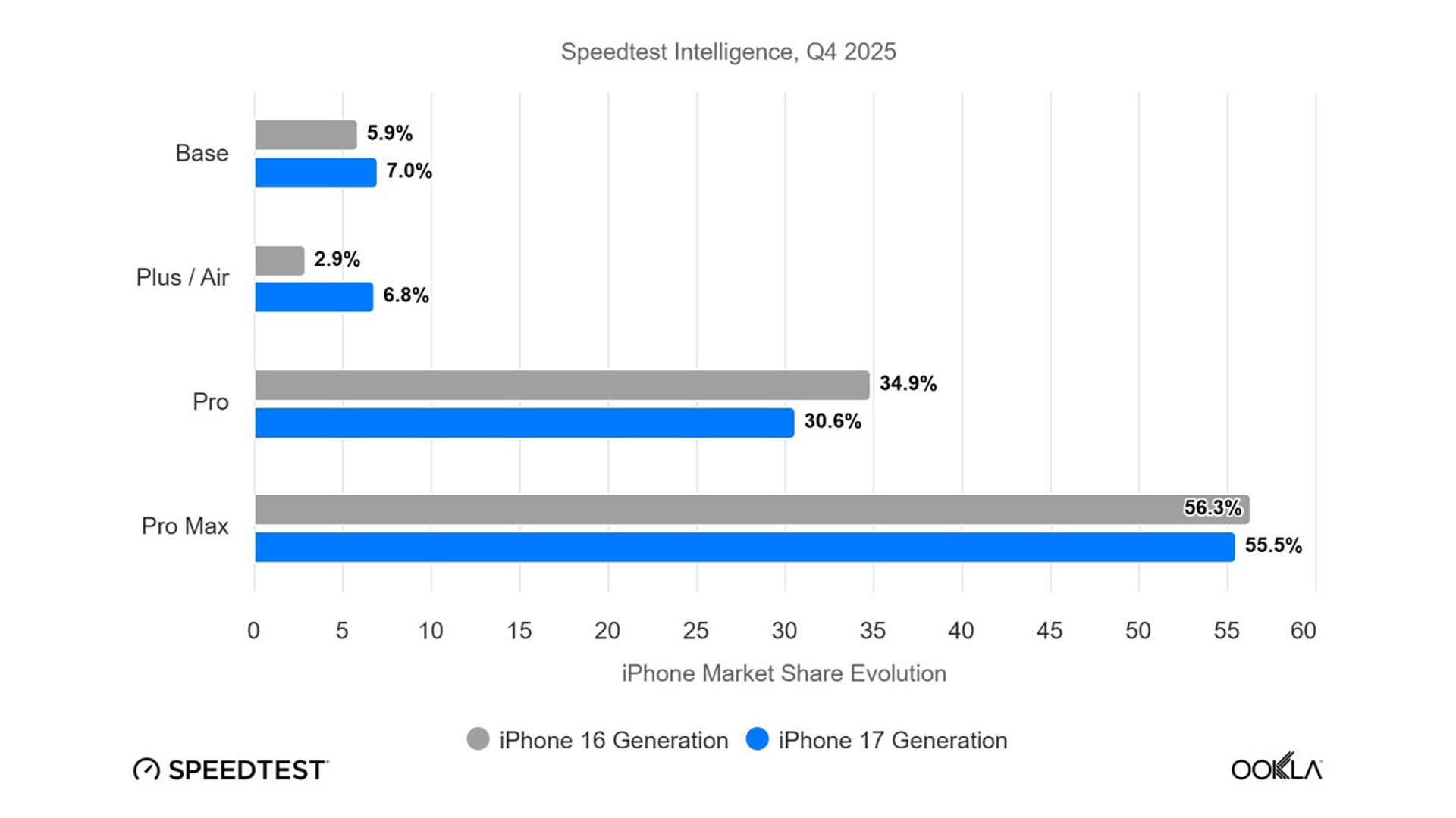 今回Ooklaが公開したレポートによるとiPhone AirはiPhone 16 Plusの約2倍の成功を収めていることが判明したとしています。